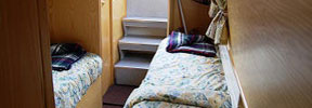 Two fixed doubles, or four fixed singles; plus saloon convertible to double or two singles.
