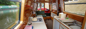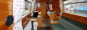 The semi-traditional back end has seating. Radio CD player with 4 speakers, and colour TV/DVD. The front cockpit has seats either side. An inverter proves 240v AC, to power any of your own normal mains appliances up to 1000 watts. There is a mains hair dryer (more powerful than on other boats). The engine is an Isuzu 4-cylinder water-cooled diesel.